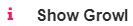 Show Growl adalah node yang berfungsi untuk menampilkan pop up message secara custom ke user yang kita daftarkan id user tersebut. Jenis pop up yang dimunculkan akan berbeda sesuai dengan tipe growl nya, yaitu ada info, warning, fatal & error.