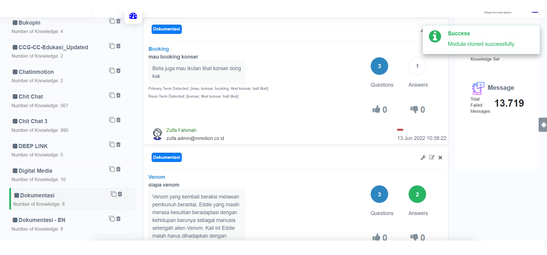 Module berhasil terduplikasi. Selanjutnya, Anda dapat tambah atau ubah knowledge sesuai dengan kebutuhan.