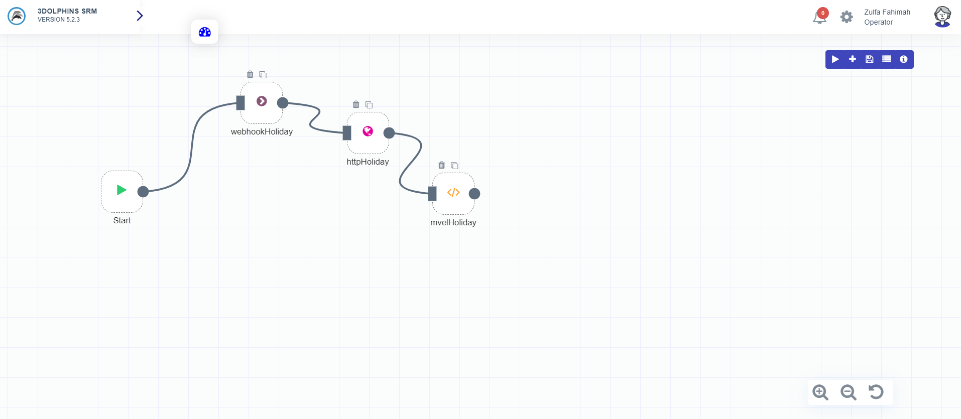 Jika Anda ingin mengedit workflow, pergi ke daftar workflow kemudian pilih workflow dan klik tombol 'Edit', workflow akan tampil seperti gambar dibawah ini.&#x20;