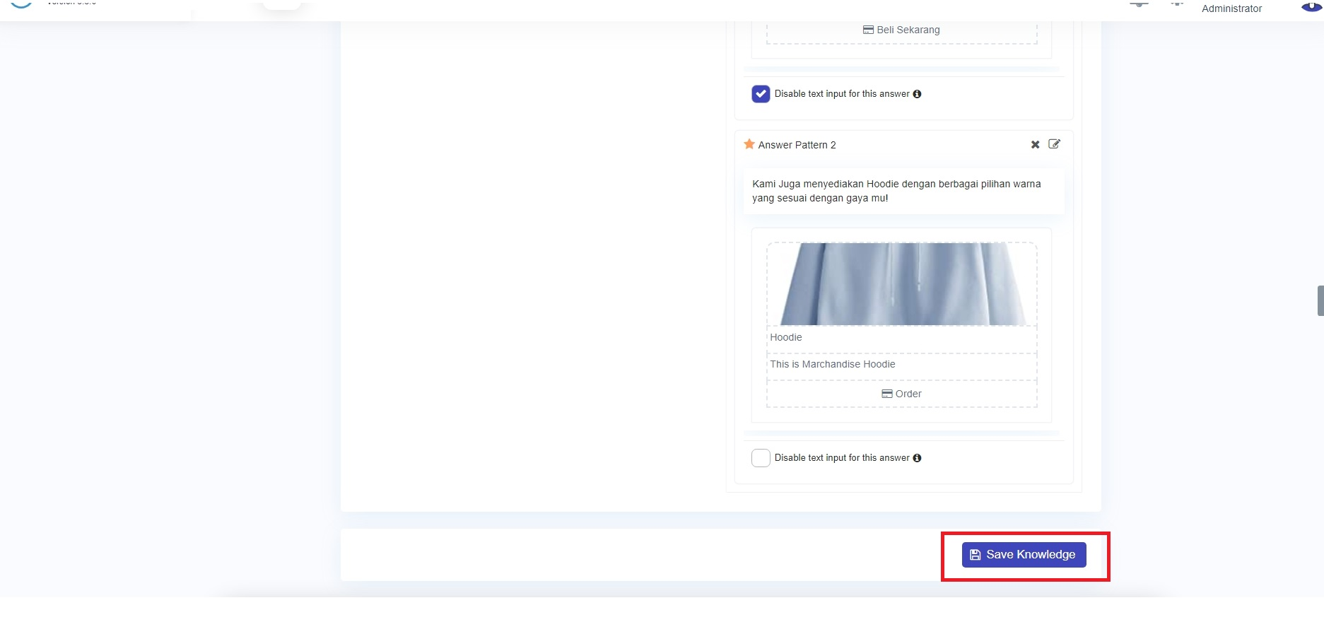 In the answer set section, you can sort answers or delete answers by clicking on the (![](https://765826444-files.gitbook.io/~/files/v0/b/gitbook-legacy-files/o/assets%2F-MNQidQwa-0K9_KnQpoc%2F-MXknc4paWpm4w27owGC%2F-MXkrRaYk-NVQdMyypNG%2Ficon%20manual%20knowledge%201.png?alt=media\&token=284ac692-8541-4c42-a833-8a59d7048cfb)) or (![](https://765826444-files.gitbook.io/~/files/v0/b/gitbook-legacy-files/o/assets%2F-MNQidQwa-0K9_KnQpoc%2F-MXknc4paWpm4w27owGC%2F-MXkrV-880f_wIGeQPfI%2Ficon%20manual%20knowledge%202.png?alt=media\&token=5d7f9c9a-66f8-443a-b490-356debe76e53)) icon, and you can also delete answers by clicking on the (![](https://765826444-files.gitbook.io/~/files/v0/b/gitbook-legacy-files/o/assets%2F-MNQidQwa-0K9_KnQpoc%2F-MXknc4paWpm4w27owGC%2F-MXkrXnyJl5z02it-lrc%2Ficon%20manual%20knowledge%203.png?alt=media\&token=7e2df13f-d513-4043-a163-21d961ce4e51)) icon. To add answer pattern, click the **'Add**‘ button.