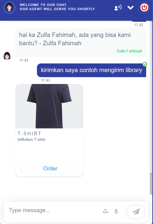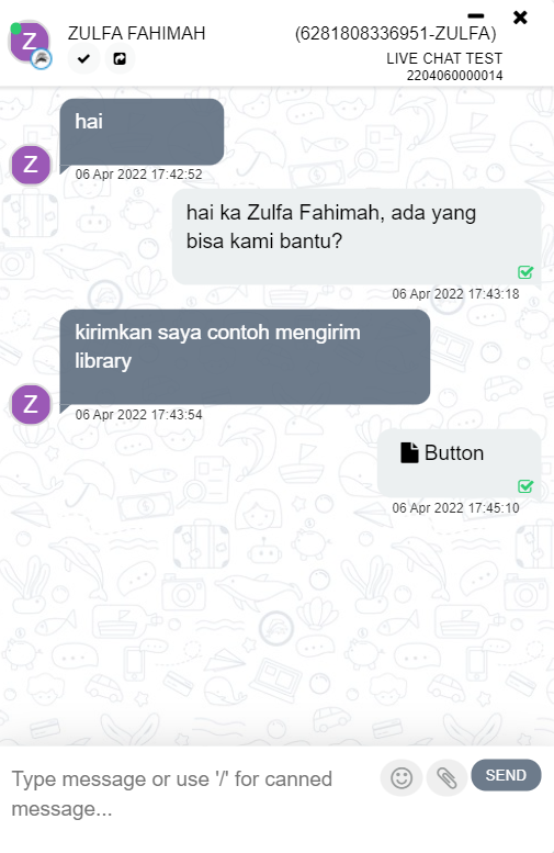For example, attach digital library with type digital library is ‘card‘. If the digital library has been sent successfully, you will see a digital library in the conversation chat, as shown below.
