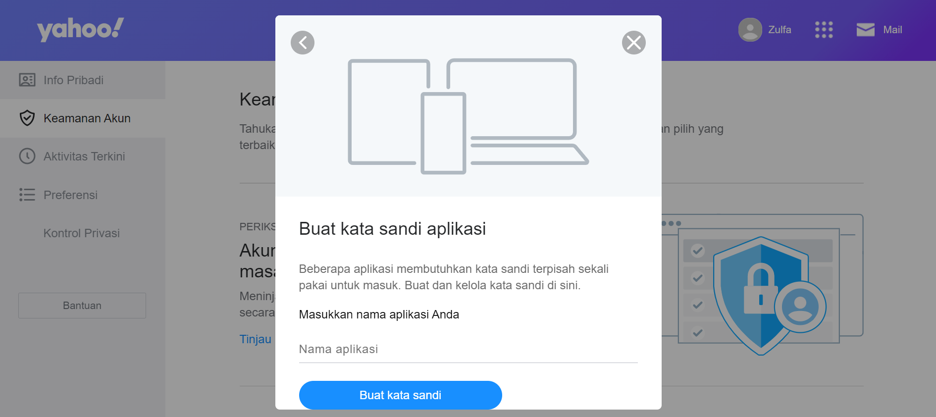 Enter your app password name and click the **'Buat kata sandi'** button.