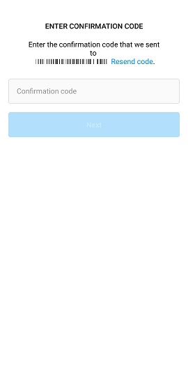 Then, enter the confirmation code sent by Instagram to the mobile number or email address you used to register and click **'Next'** to continue.